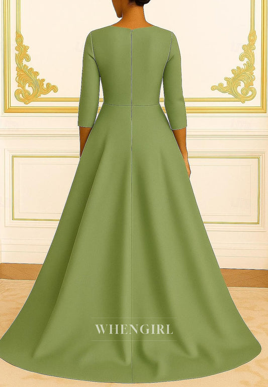 Green 3/4 Sleeves Scoop Neck A-Line Appliqued Ankle Length Mother of the Bride Dress