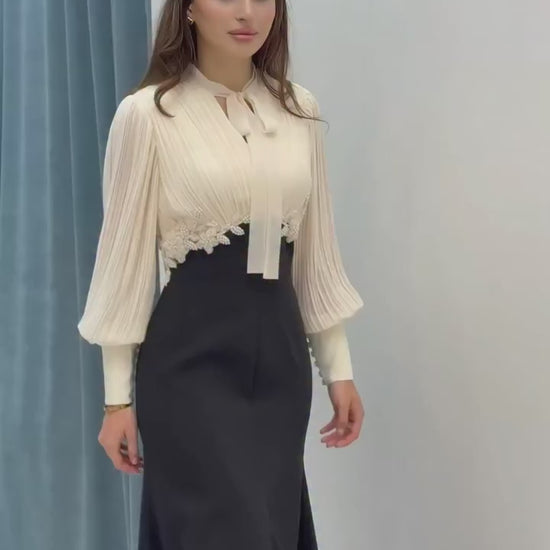 Make a splash in this playful mermaid evening dress featuring long sleeves and intricate beading that glimmers with every move. The ankle-length design hugs your curves before flaring out beautifully, perfect for turning heads and dancing the night away in style.