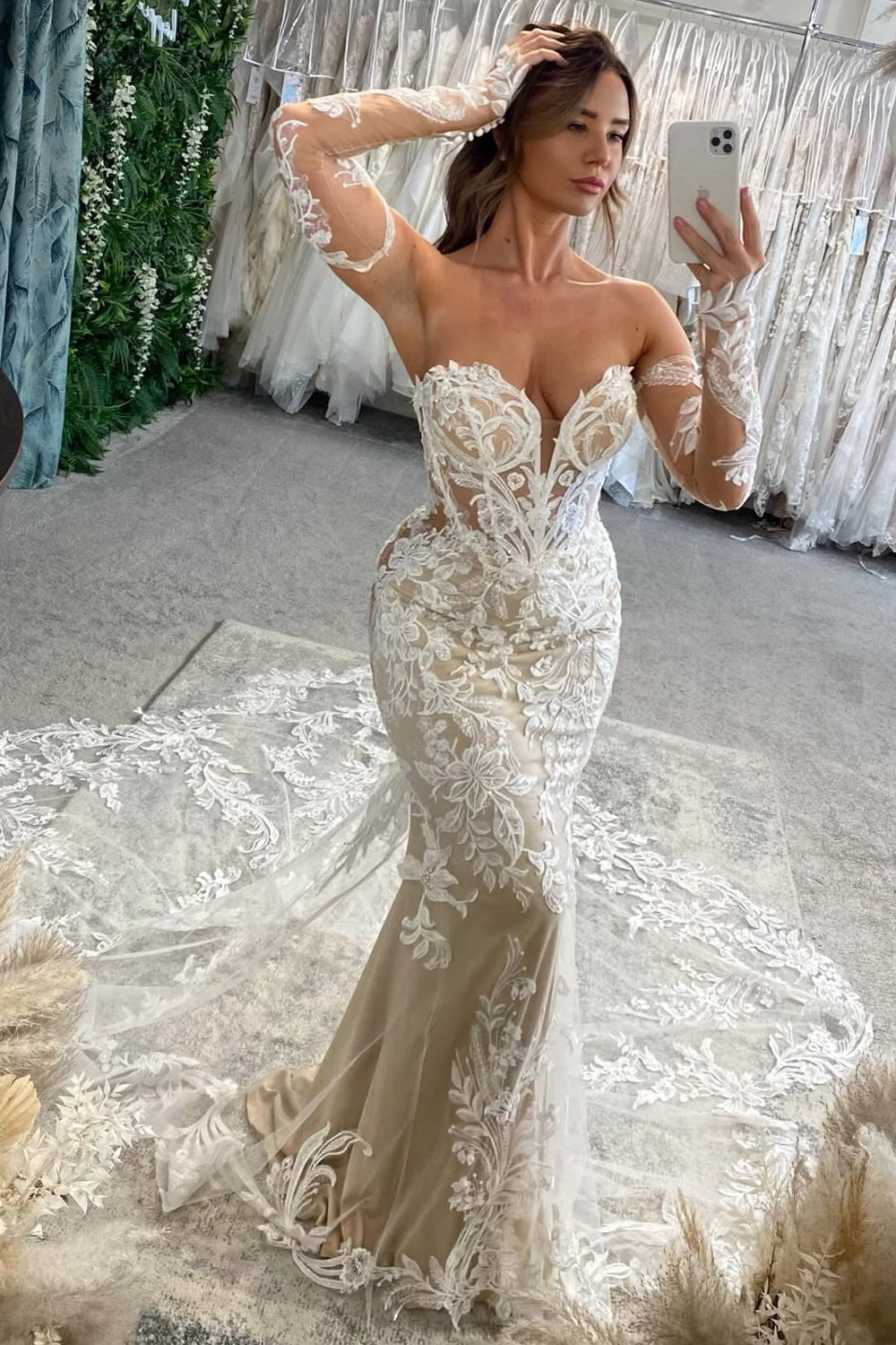 Stunning Mermaid Sweetheart Lace Wedding Dress with Appliques