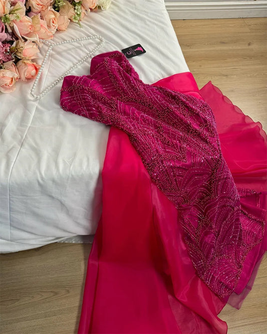 Pearl Pinck Strapless Off Shoulder Beaded Lace Mermaid Evening Formal Dress