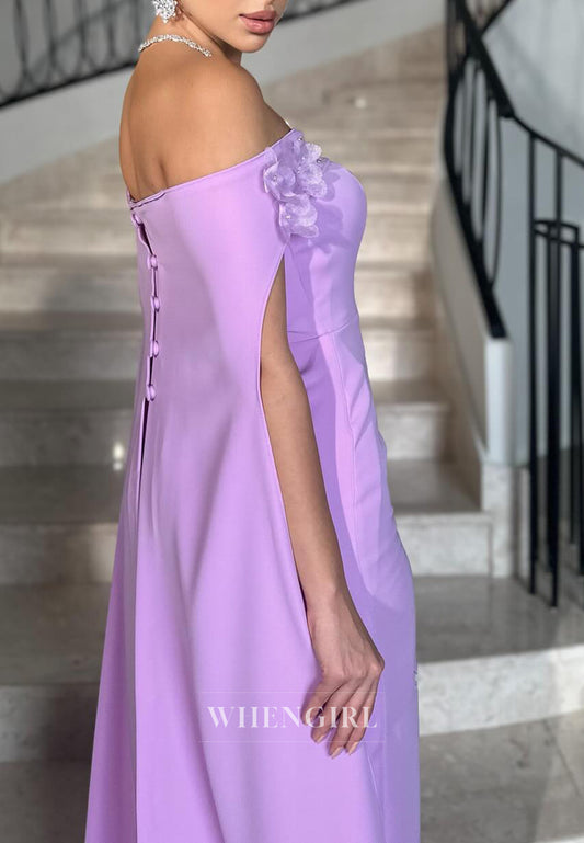 Lilac Off Shoulder Floral Sweep Train Sheath Formal Party Dress