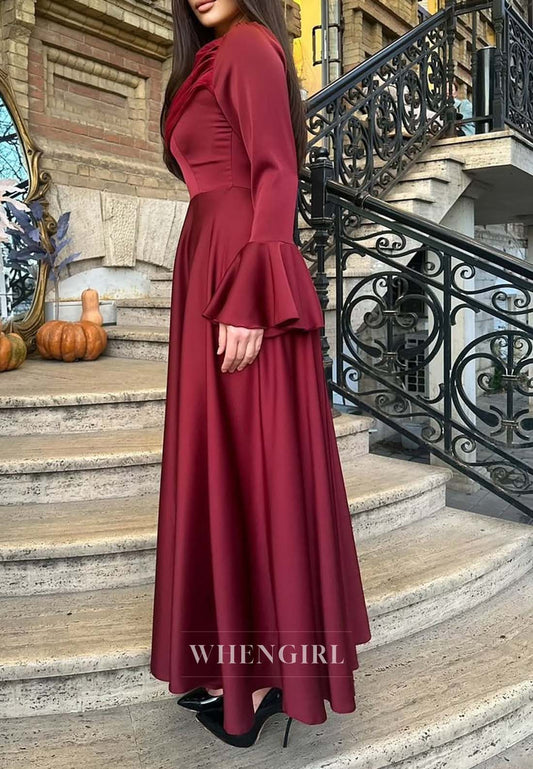 Square Neck Long Bell Sleeves Formal Dress A-Line Ankle Length Evening Gown