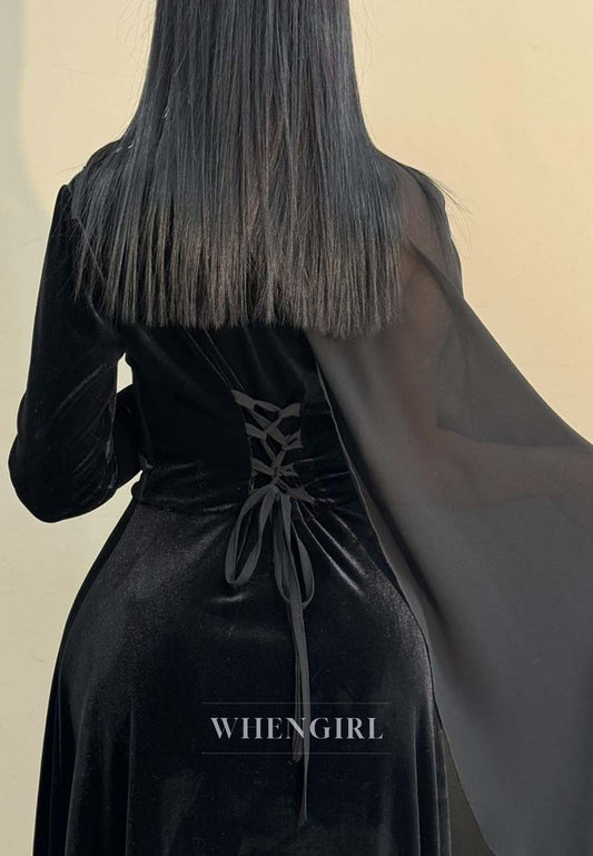 Graceful Bateau Neck Sheath Formal Dress Single Long Sleeves Lace Up Velvet Evening Dress