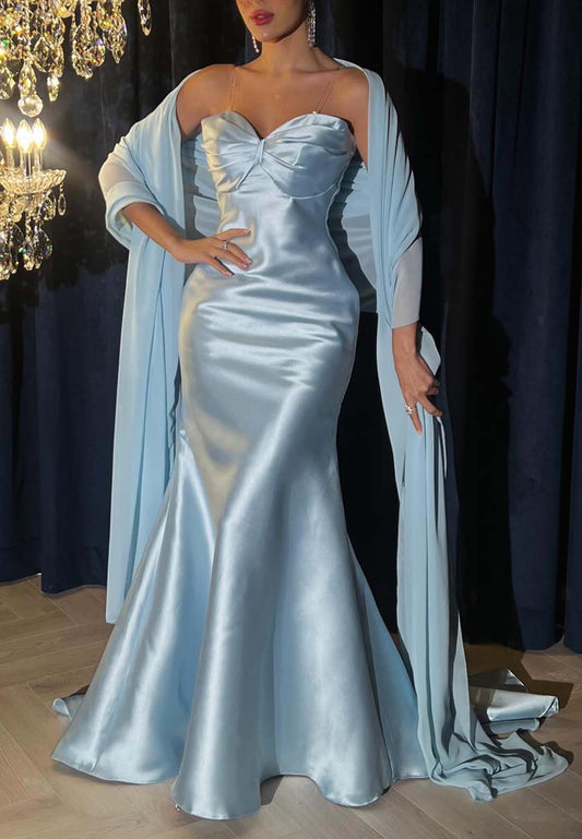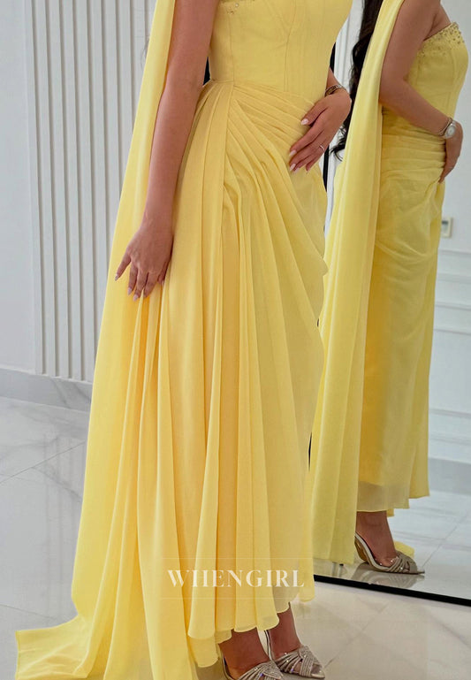 Mermaid Sleeveless Sweetheart Pleated Formal Dress Evening Gown with Cape