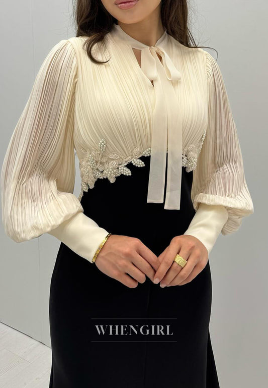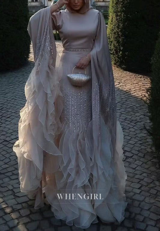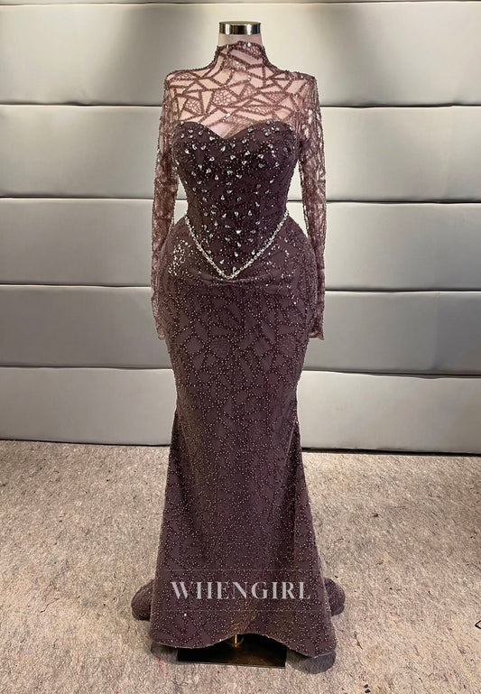 Mermaid Ankle Length Long Sleeves Evening Dress Beaded Formal Gown