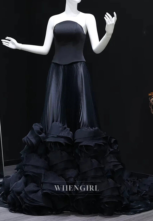 A-Line Tube Top 3D Flower Pleated Court Train Evening Formal Dress