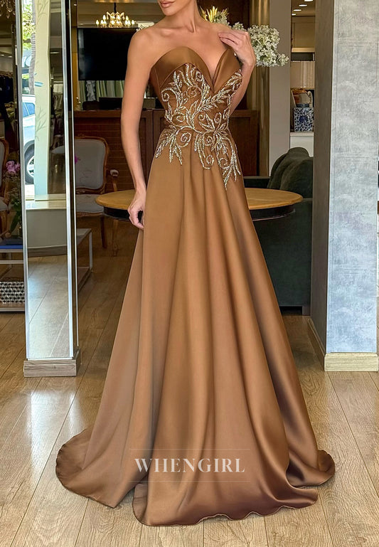 Brown Sweetheart Vine A-Line Back Zipper Evening Dress Sleeveless Formal Gown