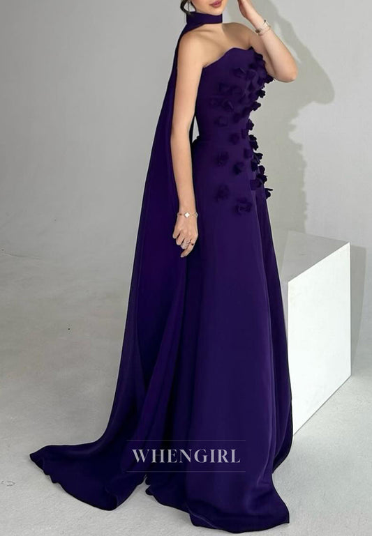 Sheath Sleeveless Sweetheart Floral Strapless Formal Evening Gown with Cape