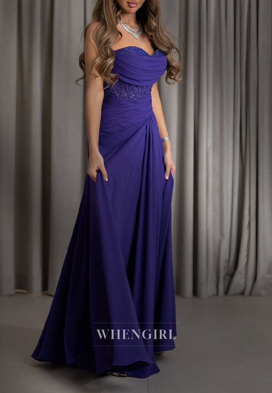 Violet Strapless Pleated Sequins Sweep Train Prom Dress Sheath Evening Formal Gown