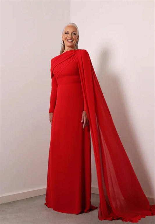 Red Long Sleeves With Shawl Mother Of The Bride Dress Floor-length Prom Dresses Customized Elegant