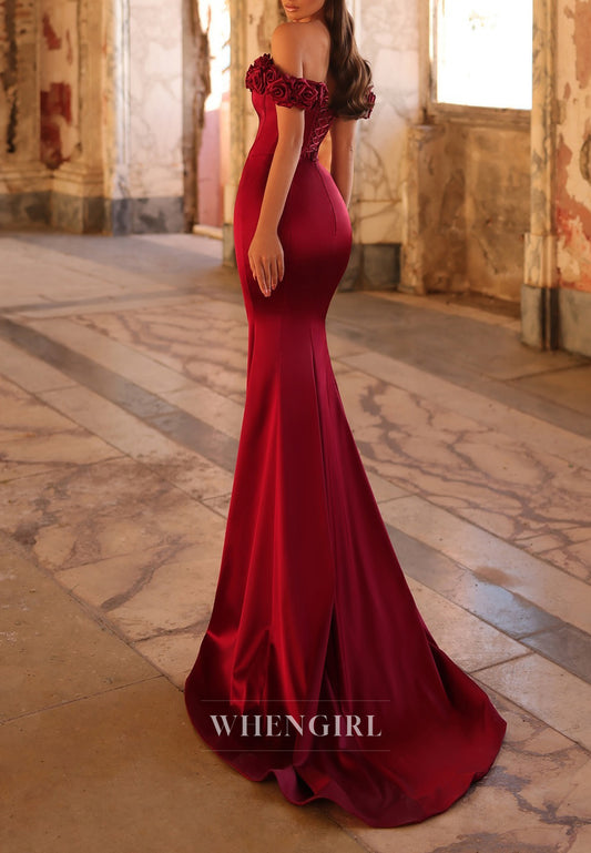 Burgundy Sweep Train 3D Flowers Sweetheart Mermaid Evening Formal Dress