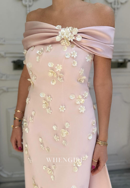 Light Pink Off Shoulder Beaded Floral Sweep Train Sheath Formal Evening Dress
