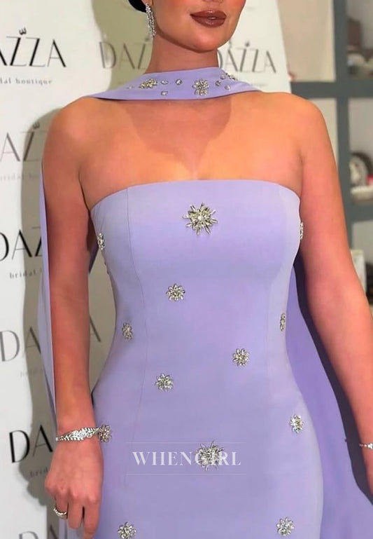 Lilac Tube Top Floral Formal Dress A-Line Strapless Evening Gown with Cape