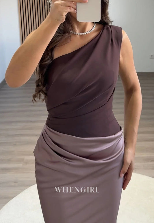 Sheath One Shoulder Sleevelss Pleated Evening Formal Dress