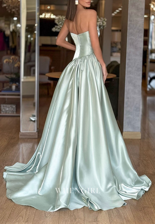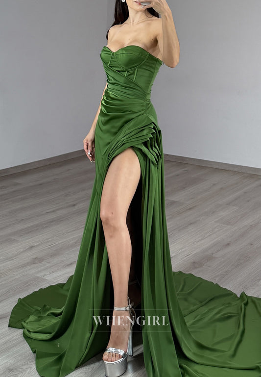 Emerald Sheath Sleeveless Pleated Side SLit Court Train Sweetheart Formal Evening Dress