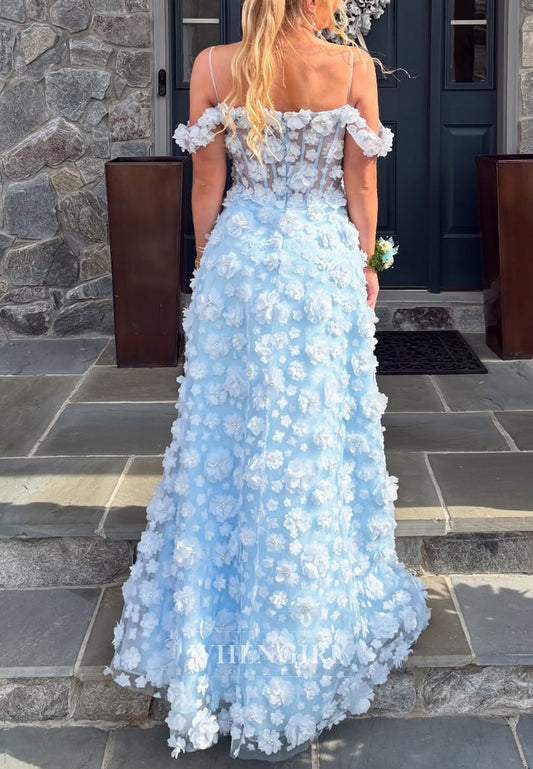 Sky Blue Sweetheart Sleeveless Floral Back Zipper A-Line Formal Evening Dress