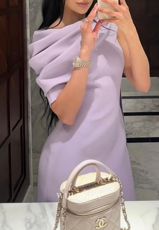 Lilac Pleated Bateau Neck Back Zipper Evening Dress Formal Gown