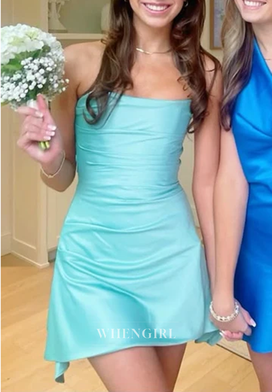 Sheath Strapless Sleeveless Pleated Short Homecoming Dress
