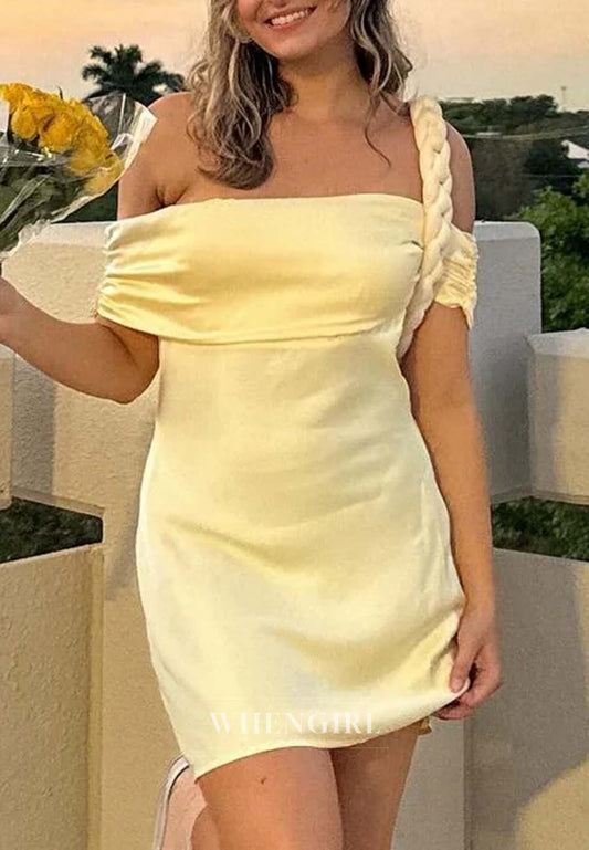Yellow Off Shoulder Sleeveless Simple Sheath Short Homecoming Dress