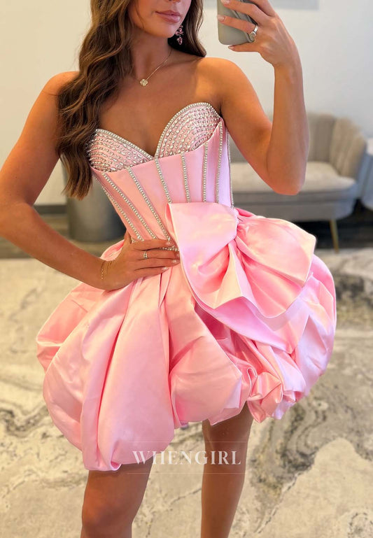 Red Sleeveless Bowknot Rhinestone Beaded A-Line Short Homecoming Dress