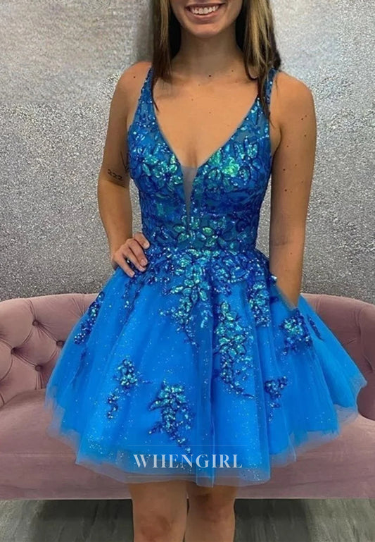A-Line V Neck Regular Straps Sleeveless Sequins Beading Short Homecoming Dress