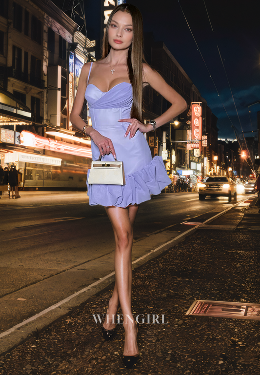 Sheath V Neck Straps Sleeveles Pleated Short Homecoming Dress