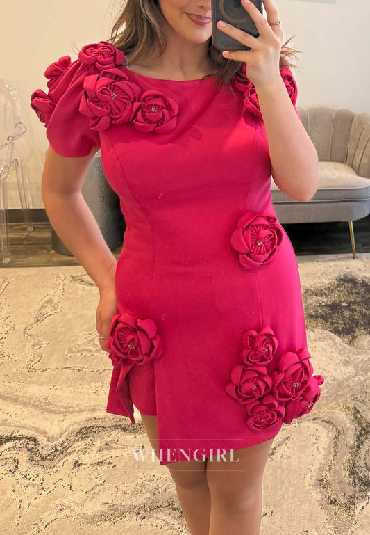 Red Bateau Neck Short Sleeveless 3D Flowers Back Zipper Short Sheath Homecoming Dress