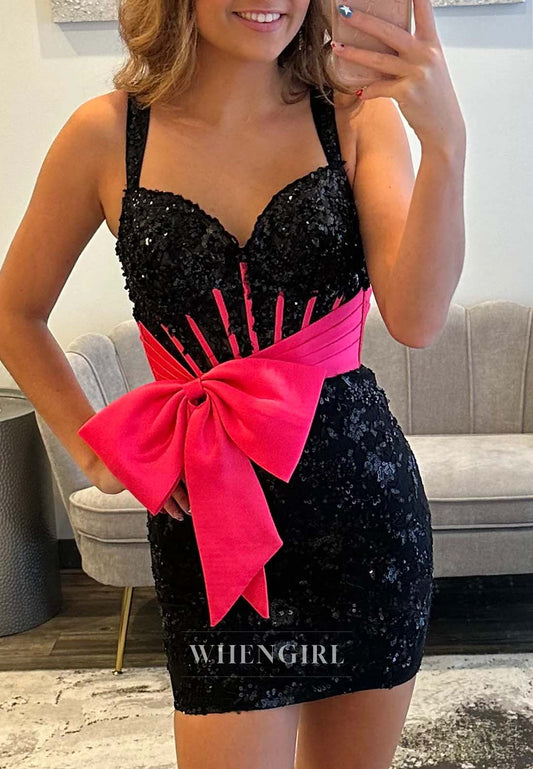 Sweetheart Beaded Back Zipper Sheath Bowknot Sleeveless Short Homecoming Dress