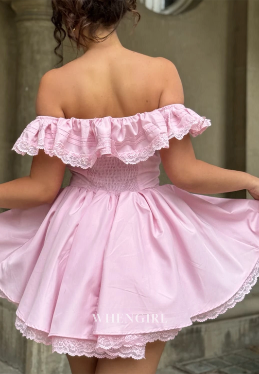 A-Line Sweetheart Off Shoulder Ruffles Sleeveless Homecoming Dress