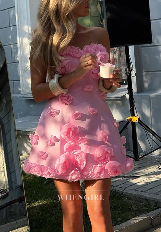 Sheath Candy Pink Sweetheart Strapless 3D Flowers Sleeveless Homecoming Dress