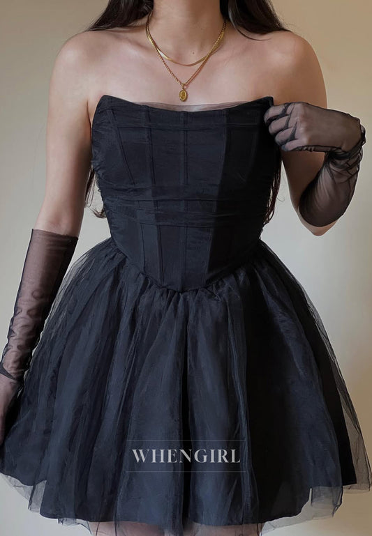 A-Line Sleeveless Strapless Tulle Short Homecoming Dress
