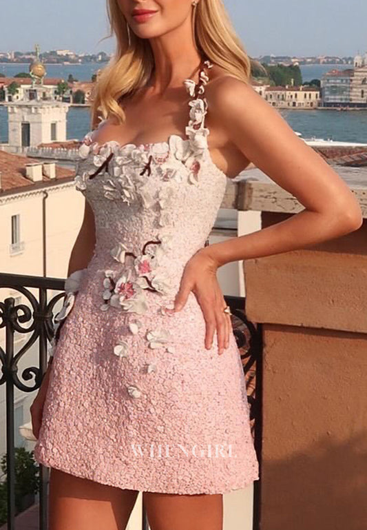 A-Line Floral Halter Sleeveless Homecoming Dress