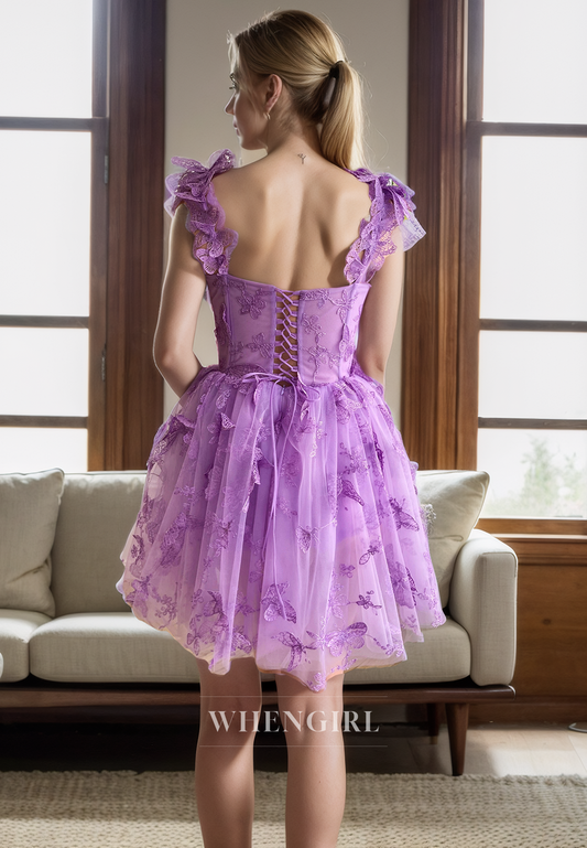 A-Line Strapless Straps Sleeveless 3D Butterfly Tulle Homecoming Dress