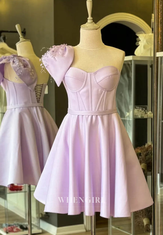 A-Line Sweetheart Sleeveless Back Zipper Bowknot Beaded Short Homecoming Dress
