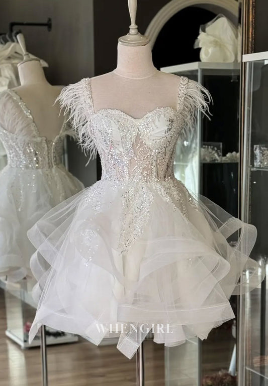 Chic Sweetheart Beaded Sleeveless Feather A-Line Short Homecoming Dress