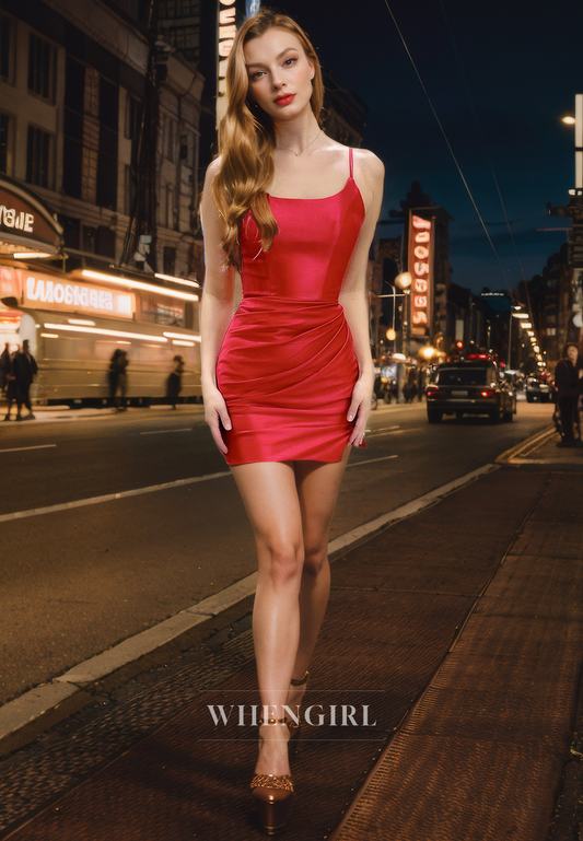 Sheath V Neck Straps Sleeveless Pleated Back Zipper Short Homecoming Dress