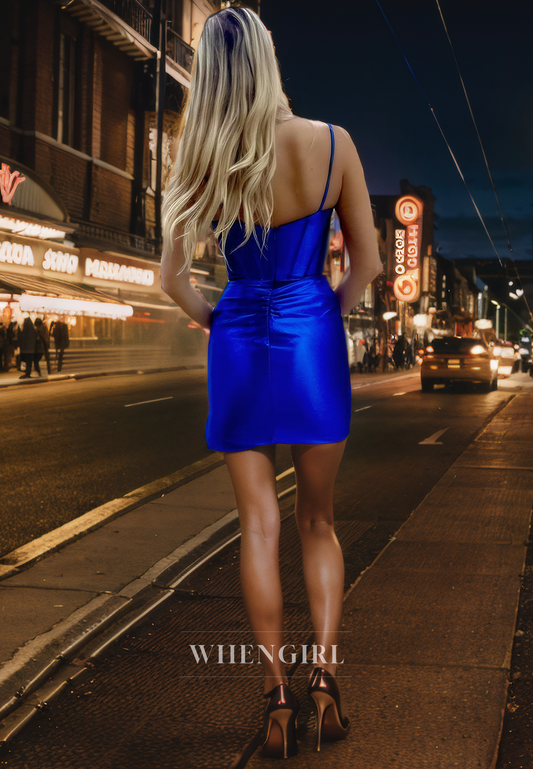 Sheath One Shoulder Boat Neck Sleeveless Ruched Short Homecoming Dress