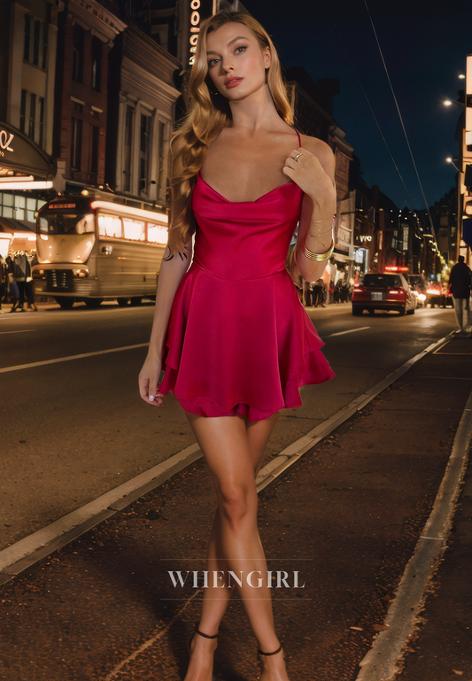 A-Line Halter Sleeveless Short Satin Homecoming Party Dress