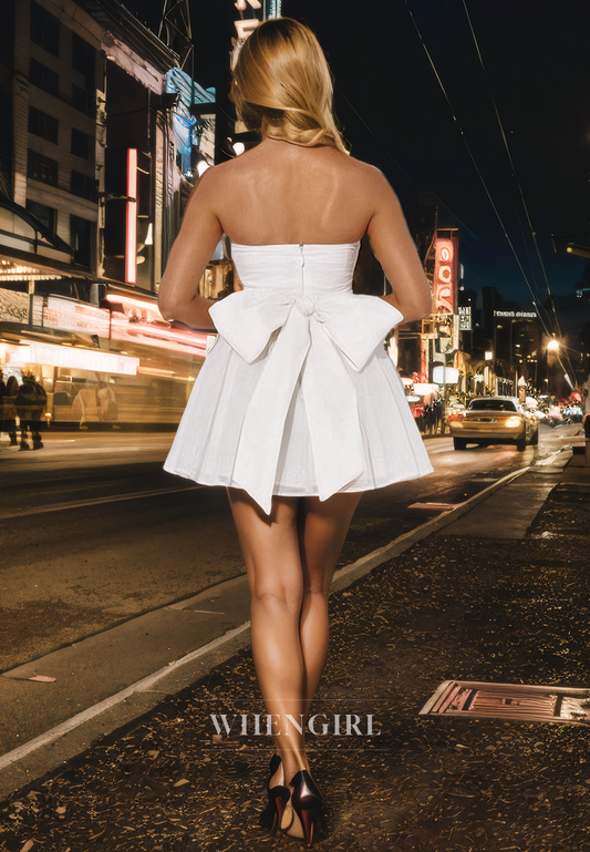 A-Line Strapless Sleeveless Back Zipper Short Homecoming Dress with Bow Knot