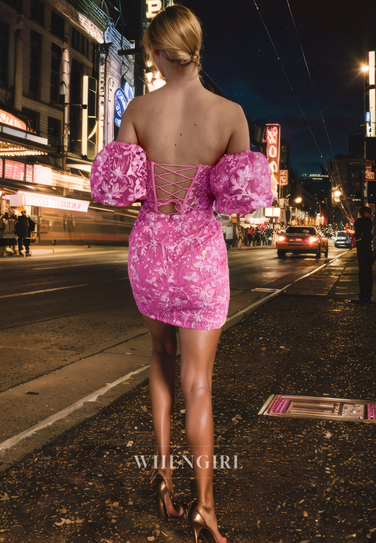 Sheath Strapless Off Shoulder Half Sleeves Criss Cross Straps Homecoming Dress