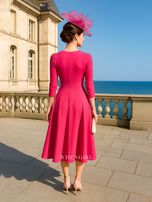 A Line Bateau Beads 3/4 Sleeves Elegant Short Mother of the Bride Dress