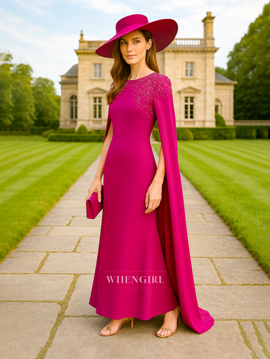 A Line Bateu Neck Beads Bell Sleeves Elegant Long Mother of the Bride Dress