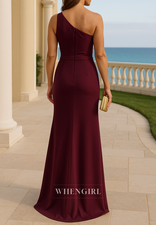 Cabernet One Shoulder Sheath Side Slit Floor Length Sleeveless Mother of the Bride Dress