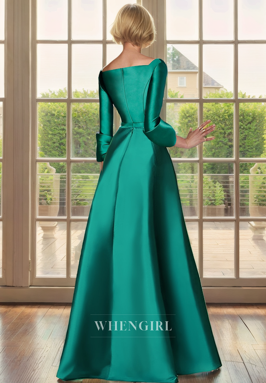 A-Line Scoop Neck 34 Length Sleeves Back Zipper Satin Mother of Bride Dress with Slit