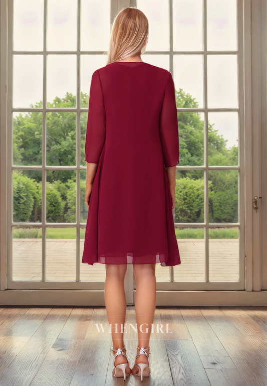A-Line Two Piece High Scoo Neck 34 Length Sleeves Back Zipper Knee Length Mother of Bride Dress