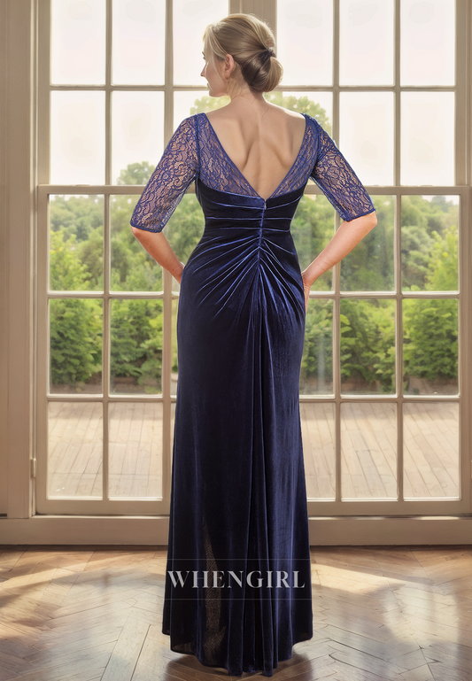 Sheath Sweeyheart Neck Half Lace Sleeves Velvet Pleated Beaded Mother of Bride Dress