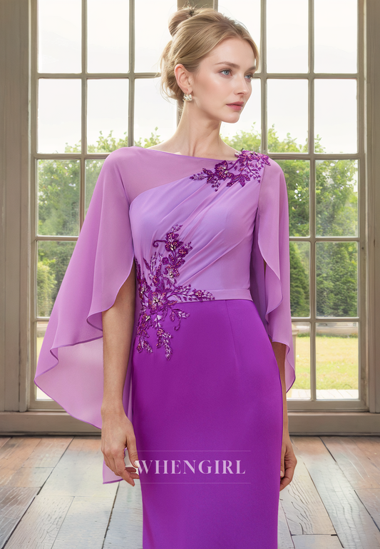 Sheath V Neck Half Sleeves Fully Appliques Back Zipper Mother of Bride Dress with Detachable Train