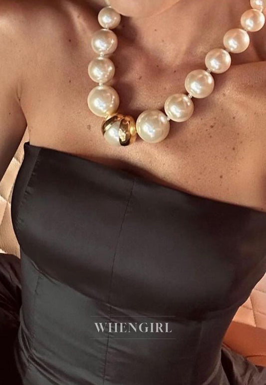 Elegant Black Tube Top A-Line Sleeveless Long Pleated Evening Party Dress