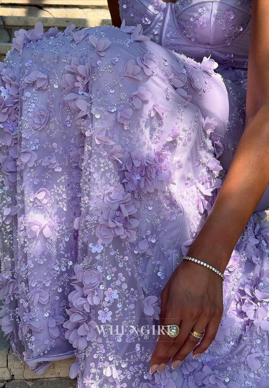 Lilac Sweetheart Sleeveless Beaded Floral Lace Up Mermaid Formal Evening Dress