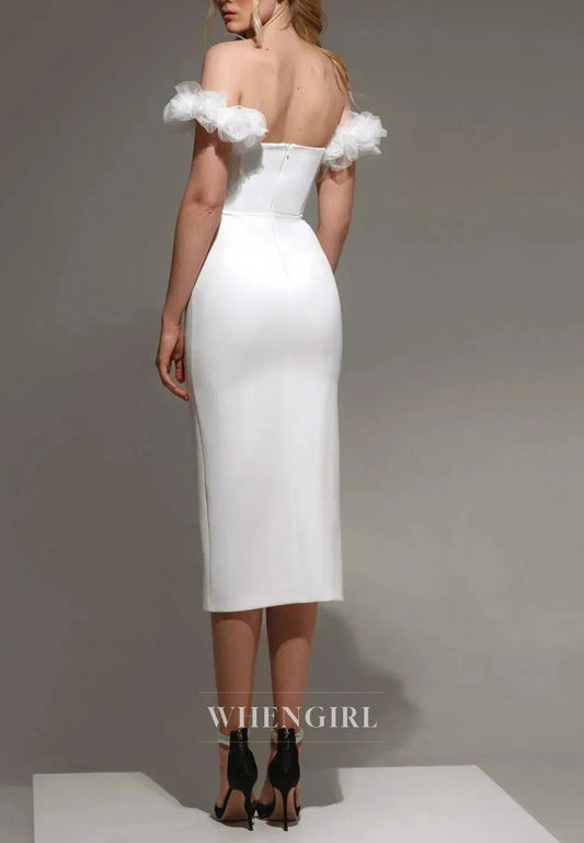 Sheath Ankle Length Off the Shoulder Wedding Dress with Flower